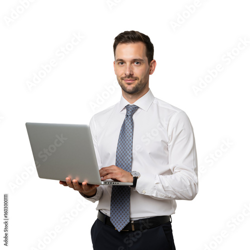 Professional with Laptop: Confidence, Tech Engagement, and Approachability