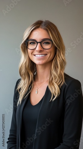 Professional woman smiling in modern office setting