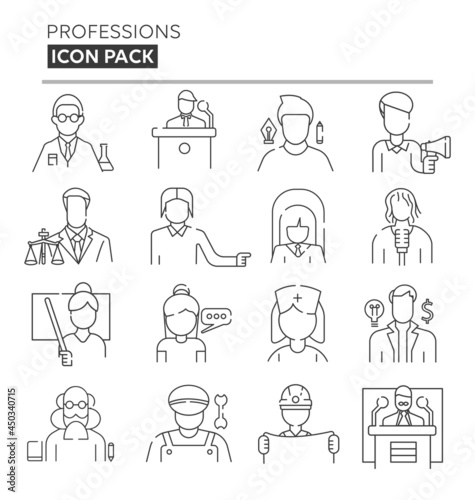 Professions And People Icon Pack, 16 icons. Professions And People Linear Icons Set