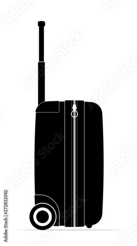 Profile black travel suitcase. Castors and handle for convenience. Travel airfare or vacation.