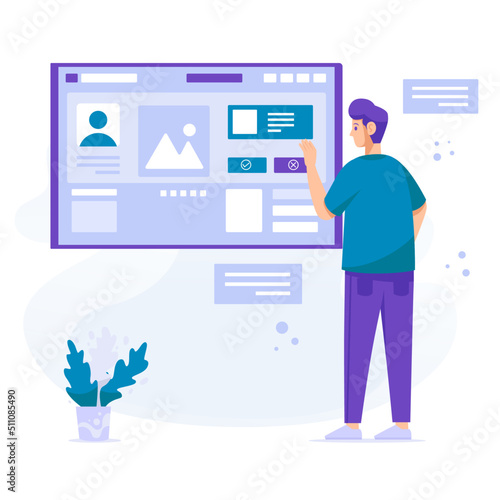 Profile Filling Presentation on Screen Man People Flat Illustration