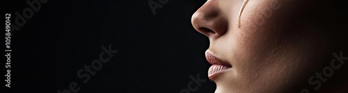 Profile of a woman with a tear, expressing deep emotion against a dark background.