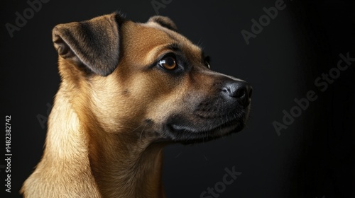 Profile of Brown Dog Posing on Dark Background Looking Alert