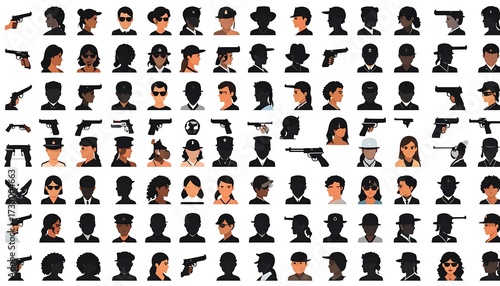 Profile silhouettes of diverse people, many wearing headwear and accessories