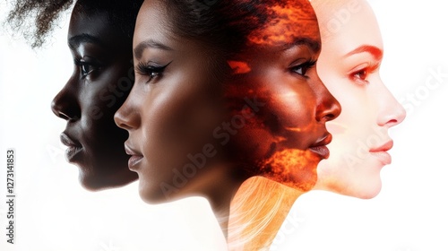 Profiles of diverse women in artistic overlay of natural elements International Women of Color Day