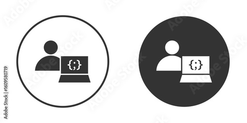 Programmer icon in trendy flat design versions in black and white.