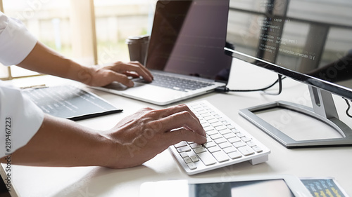 Programmer working in a software development and coding technologies. Website design. Technology concept.