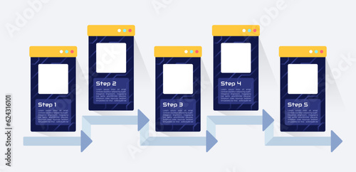 Programming infographic chart design template. Abstract infochart with copy space. Instructional graphics with 5 step sequence. Visual data presentation. Audiowide, Roboto Light fonts used