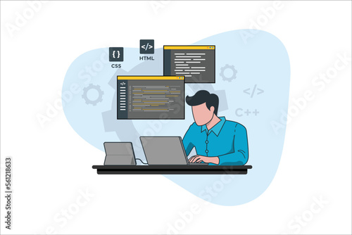 Programming skill concept, web engineer at work, vector images. programming Unique Illustration. vector design.
