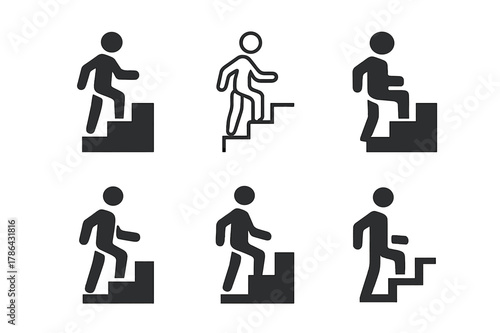 Progression Logos Grid. Learning to Embrace Failure as Part of Growth. Set Logo of Step-by-Step Progress: Filled silhouette, Minimal outline,