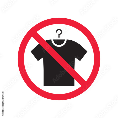 Prohibited tshirt vector icon. No shirt icon. Forbidden t-shirt icon. No shirt sign. Warning, caution, attention, restriction, danger flat sign design symbol pictogram