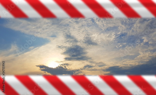 Prohibition concept. Sky with red warning tape