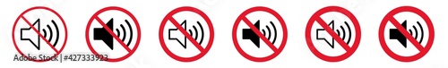 Prohibition Sign Sound Forbidden Icon Set | Loud Speaker Prohibition Signs Prohibited Vector Illustration Logo | Audio Volume Prohibition Sign Isolated Collection