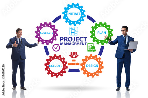 Project management concept in stages with businessman