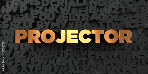Projector - Gold text on black background - 3D rendered royalty free stock picture. This image can be used for an online website banner ad or a print postcard.