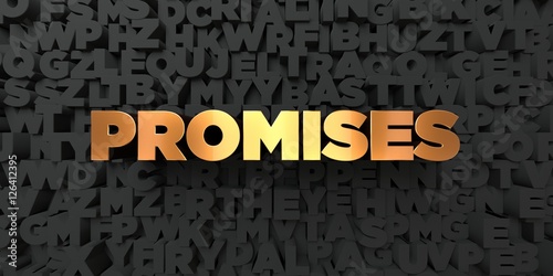 Promises - Gold text on black background - 3D rendered royalty free stock picture. This image can be used for an online website banner ad or a print postcard.