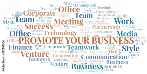 Promote Your Business word cloud. Collage made with text only.