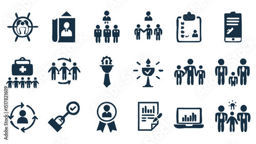 Promoting teamwork leadership and team growth with icons representing employee benefits and human resources in