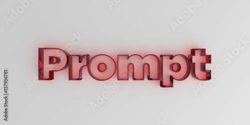 Prompt - Red glass text on white background - 3D rendered royalty free stock image.