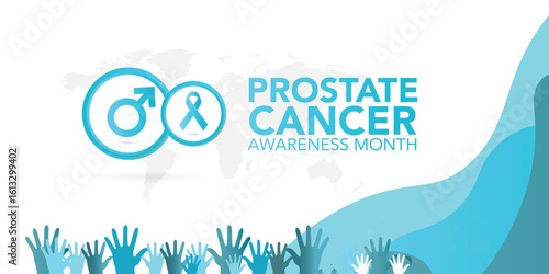 Prostate Cancer awareness banner. Realistic blue ribbon, prostate cancer symbol. Vector design template for infographics, websites, billboards