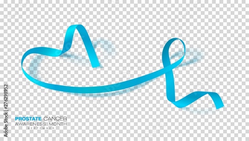 Prostate Cancer Awareness Month. Light Blue Color Ribbon Isolated On Transparent Background. Vector Design Template For Poster.