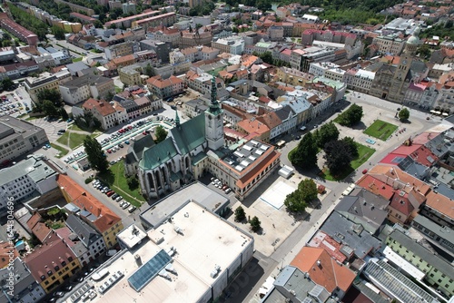 Prostejov old town historical city center in aerial panoramic view Moravia Czech republic