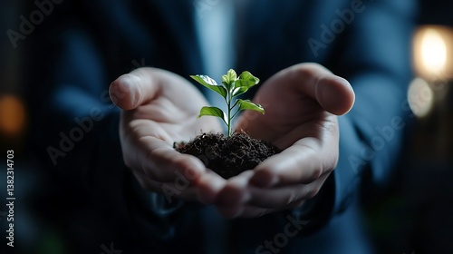 Protecting Growth Businessmans Hands Hold Young Plant.