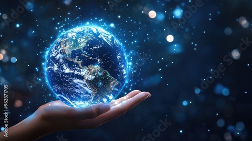 Protecting Our Planet: A Hand Holding a Glowing Earth in the Night Sky