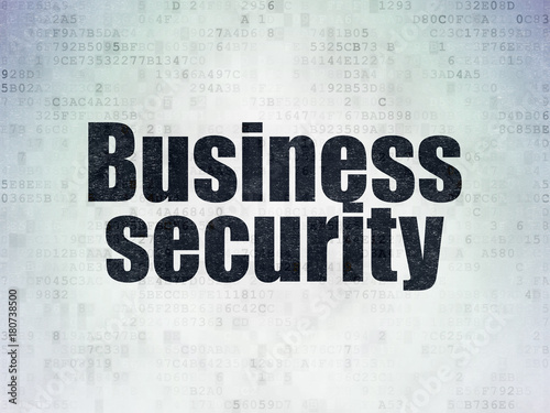 Protection concept: Painted black word Business Security on Digital Data Paper background