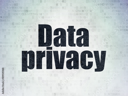 Protection concept: Painted black word Data Privacy on Digital Data Paper background