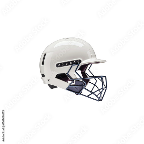 Protective Gear for Sport: A close-up shot of a modern and sleek white baseball helmet featuring a facemask. showcasing robust protection in the heat of athletic competition.