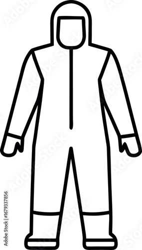 Protective Suit Icon Illustration for Safety and Medical Purposes in a Minimalist Style Line Drawing for Industrial and Healthcare Visuals