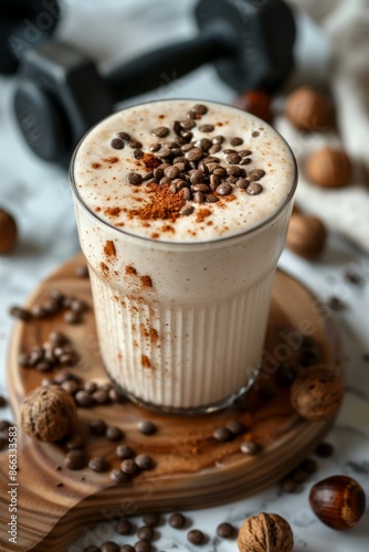 Protein Power Smoothie: A high-protein smoothie, topped with a sprinkle of protein powder.