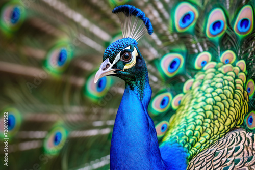 Proud peacock displaying feathers, a vibrant and captivating scene showcasing a peacock proudly displaying its colorful feathers.