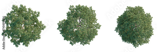 Prunus avium Tree plan, top view, cutout, transparent background, isolate, Vibrant green deciduous trees from above, perfect for landscape design