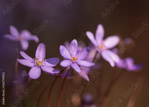 Przylaszczki w lesie, wiosenne tło, marzec 2025.