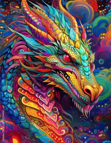 Psychadelic theme Dragon. Chinese New Year symbol. Spirit Animal Totem