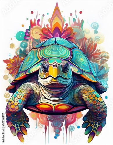 Psychadelic theme Turtle. Spirit Animal totem guide illustration