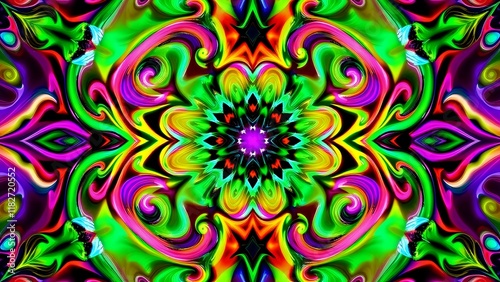 Psychedelic Dreamscape: Vibrant Purple and Green Kaleidoscope Art