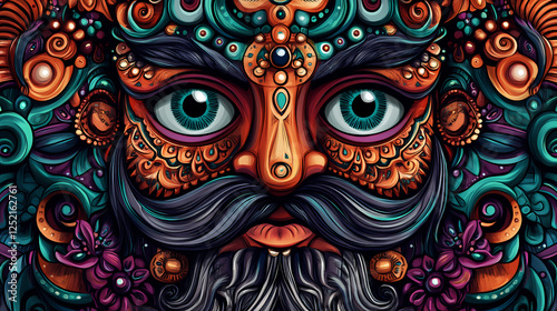 Psychedelic mandala pattern, intricate details, vibrant colors, symmetrical design, digital art. Ritualistic Symmetry. Illustration