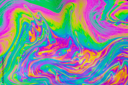 Psychedelic multicolored patterns background. Photo macro shot of soap bubbles