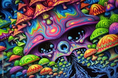 Psychedelic painting. Trippy background in acid colors. Psilocybin background. Magic mushrooms.