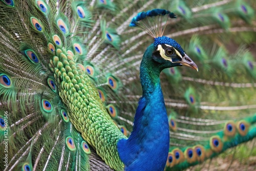 Psychedelic peacock illustration with intricate colors, psychedelic patterns, nature-inspired art, whimsical illustrations