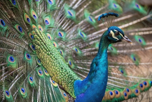 Psychedelic peacock illustration with intricate colors, whimsical illustrations, nature-inspired art, vibrant feathers, psychedelic patterns
