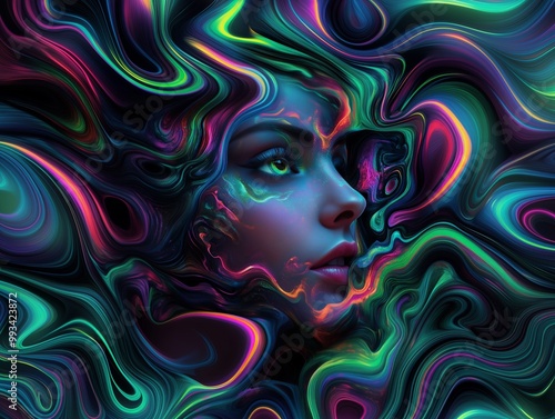 Psychedelic Portrait of a Woman's Face with Vibrant Swirling Patterns