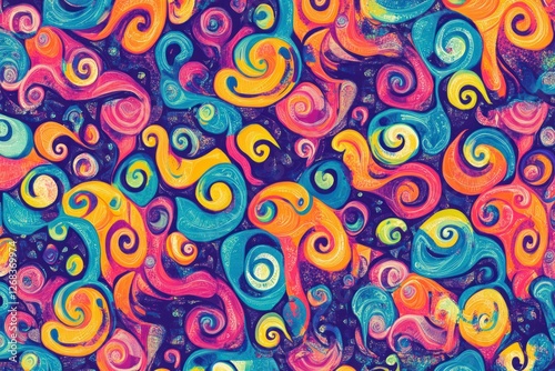 Psychedelic swirling colors in a seamless, vibrant abstract pattern.