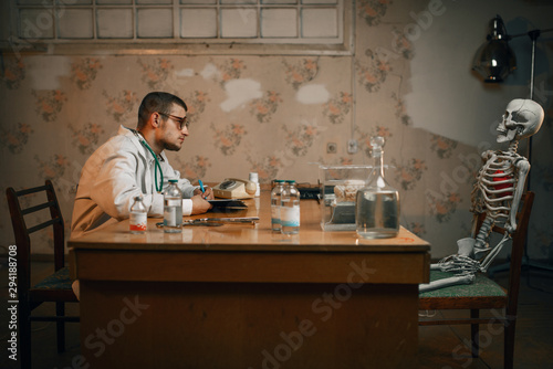 Psychiatrist and patient skeleton, mental hospital