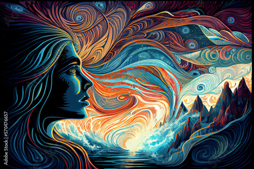 psychic waves experimentation, psychedelia, and bold mental, emotional, and spiritual Journey illustration