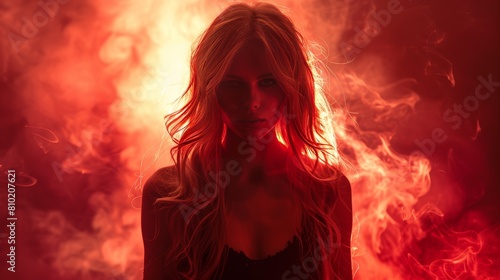 Psychological thriller, fiery glowing background, horror mystery halloween concept.