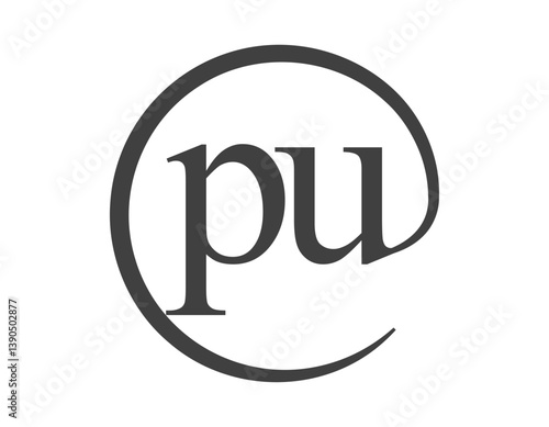 PU logo from two letter with circle shape email sign style. P and U round logotype of business company